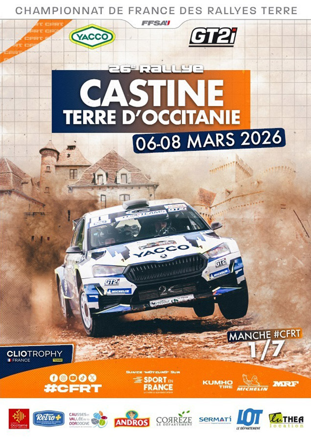 26e Rallye national Castine – Terre d’Occitanie & VHC, organisé du 6 au 8 mars 2026 par l’ASA Castine et l’Écurie des 1000 Tours, ligue Occitanie Pyrénées. 1re manche du Championnat de France des Rallyes Terre 2026.
