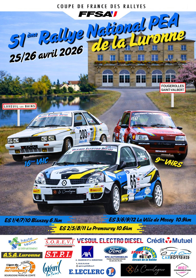 51e Rallye national de la Luronne & VHC VHRS, organisé les 25 et 26 avril 2026 par l’ASA Luronne, ligue Bourgogne – Franche-Comté.