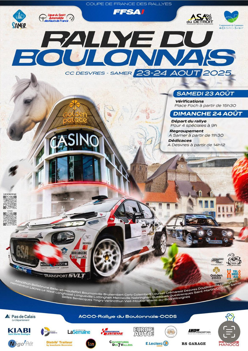 34e Rallye régional du Boulonnais – Communauté de Communes Desvres Samer & VHC, organisé les 23 et 24 août 2025 par l’ASA du Détroit et l’Auto Club Côte d’Opale, ligue des Hauts de France.