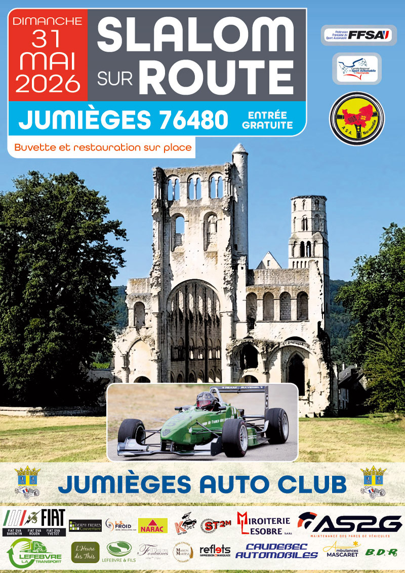 7e Slalom régional de Jumièges, organisé les 30 et 31 mai 2026 par l’ASA Normandie et le Jumièges Auto Club, ligue Normandie.