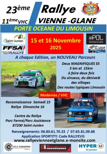 23e Rallye régional Vienne Glane – Porte Océane du Limousin & VHC, organisé les 15 et 16 novembre