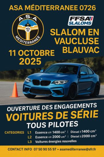 10e Slalom régional ACO, organisé les 25 et 26 octobre