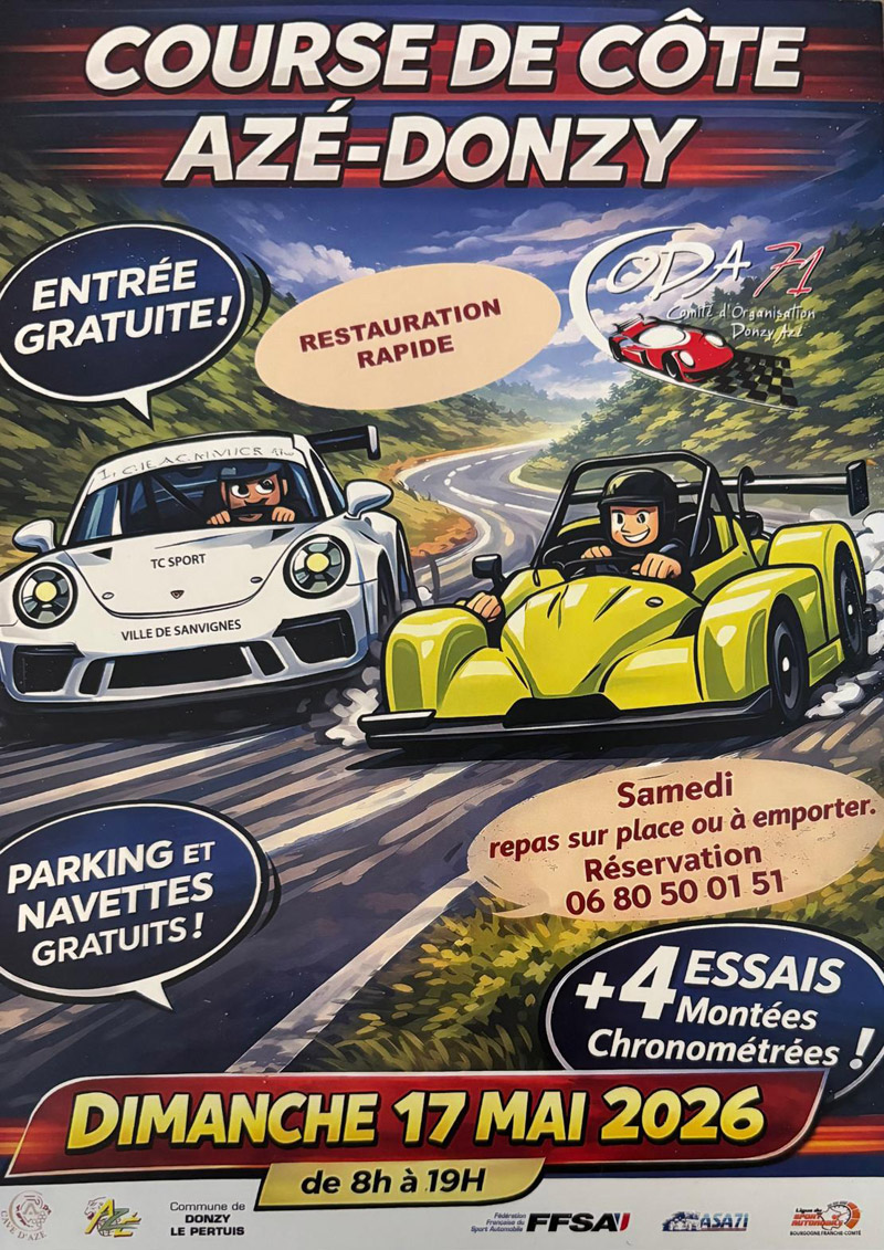 39e Course de Côte régionale d’Azé – Donzy-le-Pertuis, organisée les 16 et 17 mai 2026 par l’ASA 71 et le CODA 71, ligue Bourgogne – Franche-Comté.