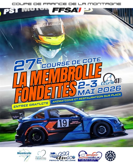 27e Course de Côte régionale de la Membrolle Fondettes, organisée les 2 et 3 mai 2026 par l’ASACO Perche – Val de Loire et l’Écurie 41, ligue Centre – Val de Loire.