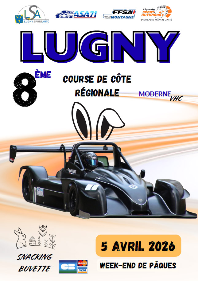 8e Course de Côte régionale de Lugny & VHC, organisée les 4 et 5 avril 2026 par l’ASA 71 et le Lugny Sport Auto, ligue Bourgogne – Franche-Comté.