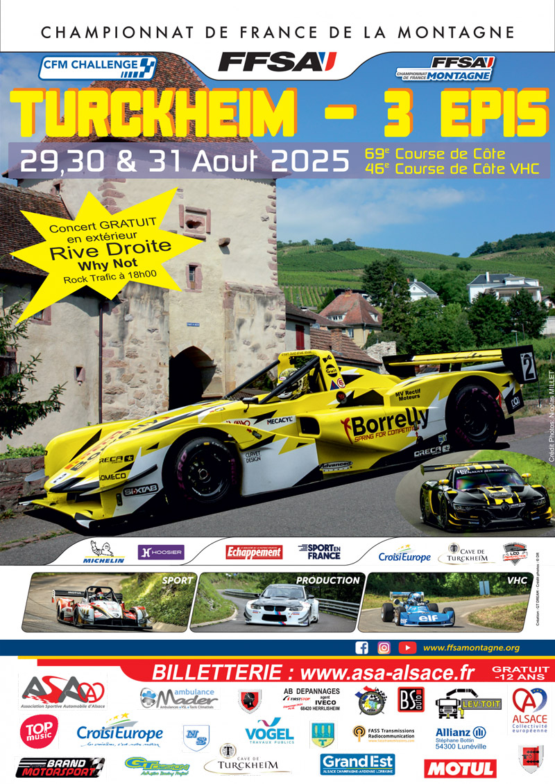 69e Course de Côte nationale de Turckheim – 3 Épis & VHC, organisée du 29 au 31 août 2025 par l’ASA d’Alsace, ligue Grand Est. 12e manche du Championnat de France de la Montagne 2025.