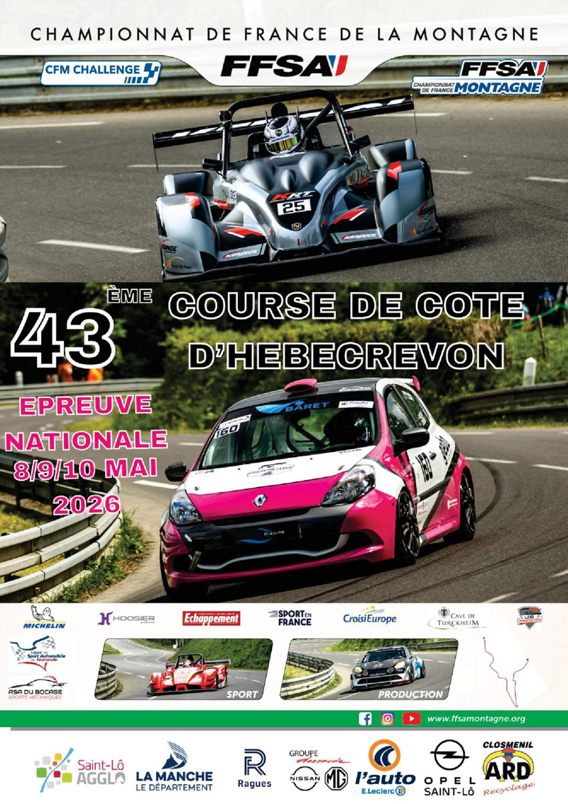 43e Course de Côte nationale des Teurses d’Hébécrevon Agneaux, organisée du 8 au 10 mai 2026 par l’ASA du Bocage, ligue Normandie. 4e manche du Championnat de France de la Montagne 2026.