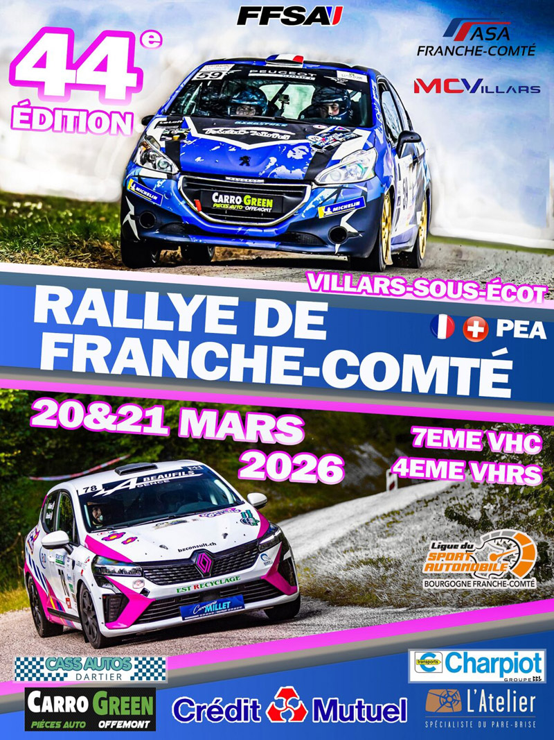 44e Rallye régional de Franche-Comté & VHC VHRS, organisé les 20 et 21 mars 2026 par l’ASA Franche-Comté, ligue Bourgogne – Franche-Comté.