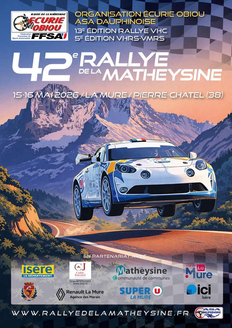 42e Rallye régional de la Matheysine & VHC VMRS, organisé les 15 et 16 mai 2026 par l’ASA Dauphinoise et l’Écurie Obiou, ligue Rhône Alpes.