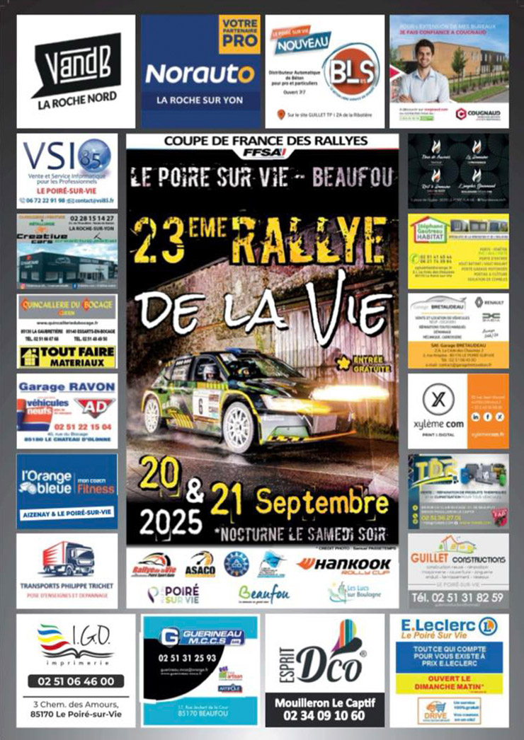 23e Rallye régional de la Vie, organisé les 20 et 21 septembre 2025 par l’ASACO Vallée de la Vie et le Poiré Sport Auto, ligue Bretagne – Pays de la Loire.