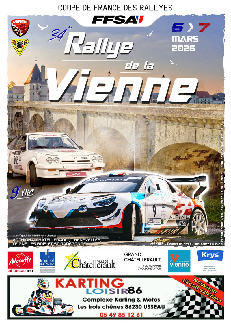 34e Rallye national de la Vienne & VHC, organisé les 6 et 7 mars 2026 par l’ASA Poitou et l’Écurie Châtellerault Poitou, ligue Nouvelle Aquitaine Nord.
