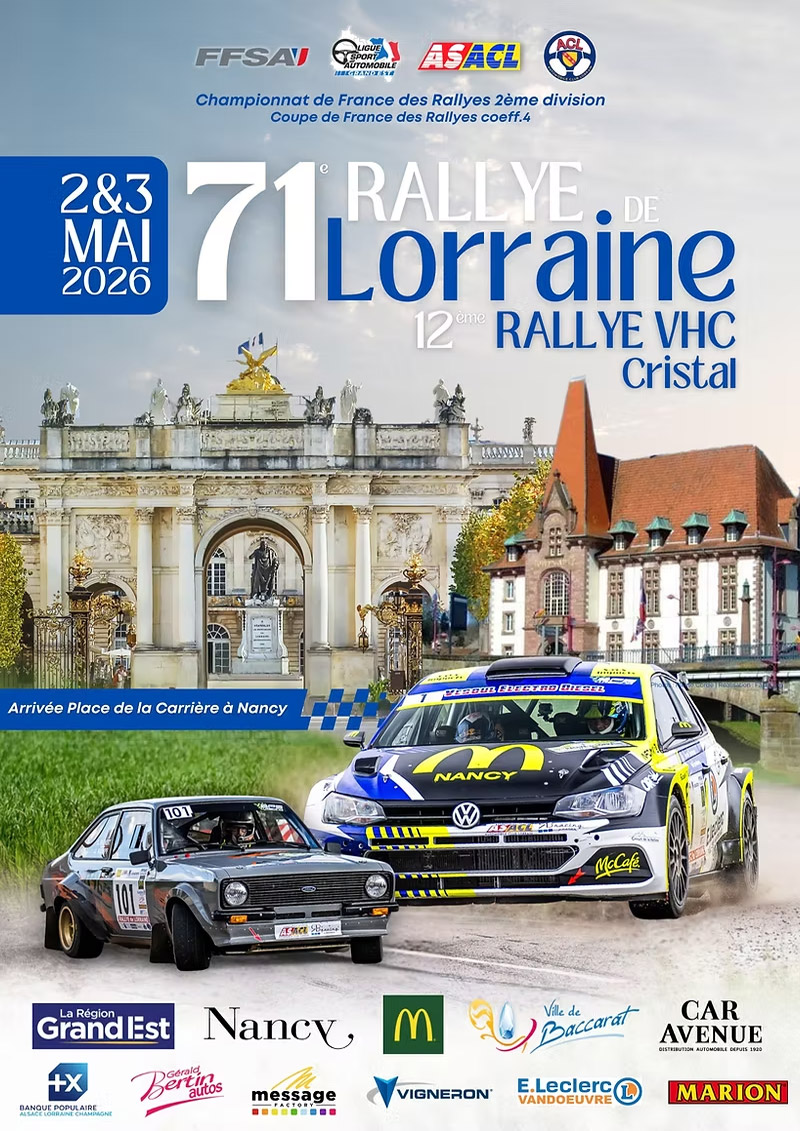 71e Rallye national de Lorraine & VHC, organisé les 2 et 3 mai 2026 par l’ASAC Lorrain, ligue Grand Est. 4e manche du Championnat de France des Rallyes 2e Division 2026.