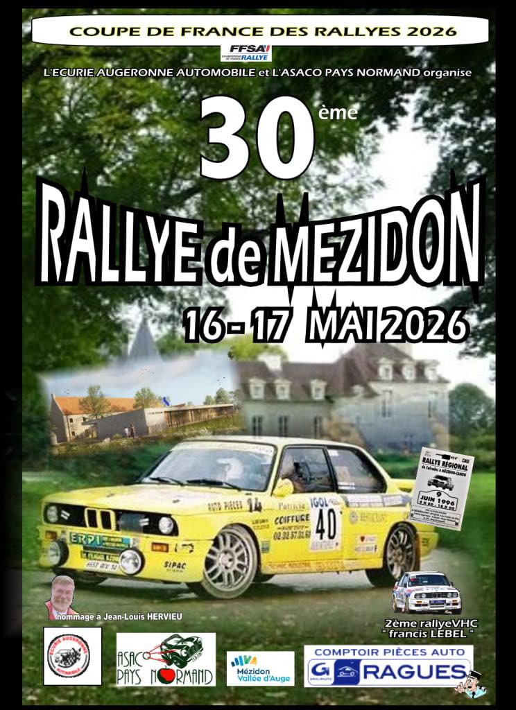 30e Rallye régional de Mézidon & VHC, organisé les 16 et 17 mai 2026 par l’ASACO Pays Normand et l’Écurie Augeronne, ligue Normandie.