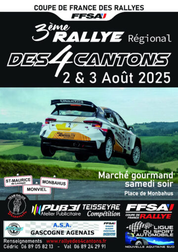 3e Rallye régional des Quatre Cantons & VHC, organisé les 2 et 3 août 2025 par l’ASA Gascogne Agenais et le Team Rallye Découverte, ligue Nouvelle Aquitaine Sud.