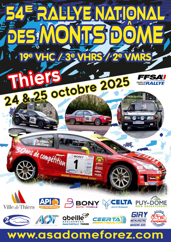 54e Rallye national des Monts Dôme & VHC VHRS VMRS, organisé les 24 et 25 octobre 2025 par l’ASA Dôme Forez, ligue Auvergne.