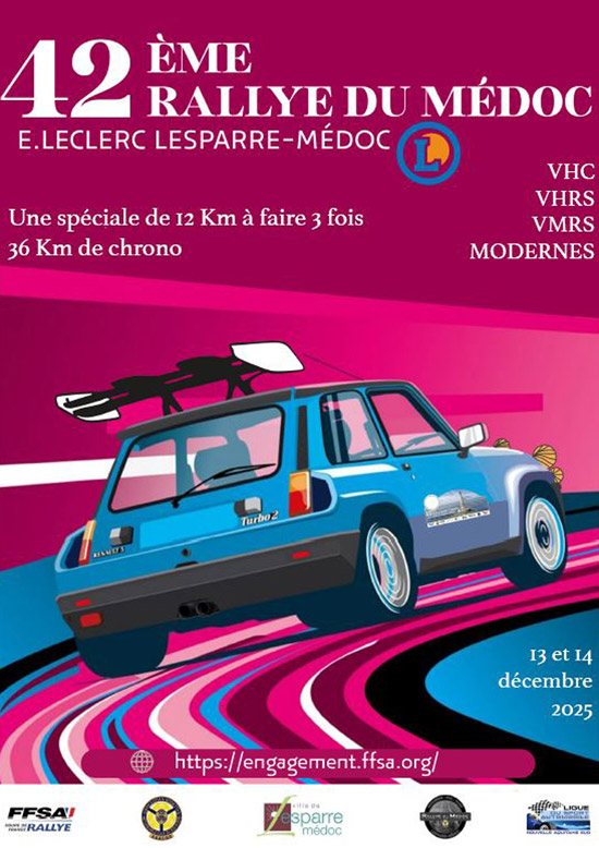 42e Rallye régional du Médoc & VHC VHRS VMRS, organisé les 13 et 14 décembre 2025 par l’ASAC du Sud-Ouest, ligue Nouvelle Aquitaine Sud.