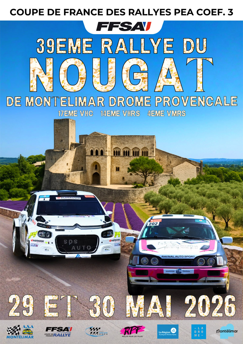 39e Rallye national du Nougat de Montélimar – Drôme Provençale & VHC VHRS VMRS, organisé les 29 et 30 mai 2026 par l’ASA Montélimar, ligue Rhône Alpes.