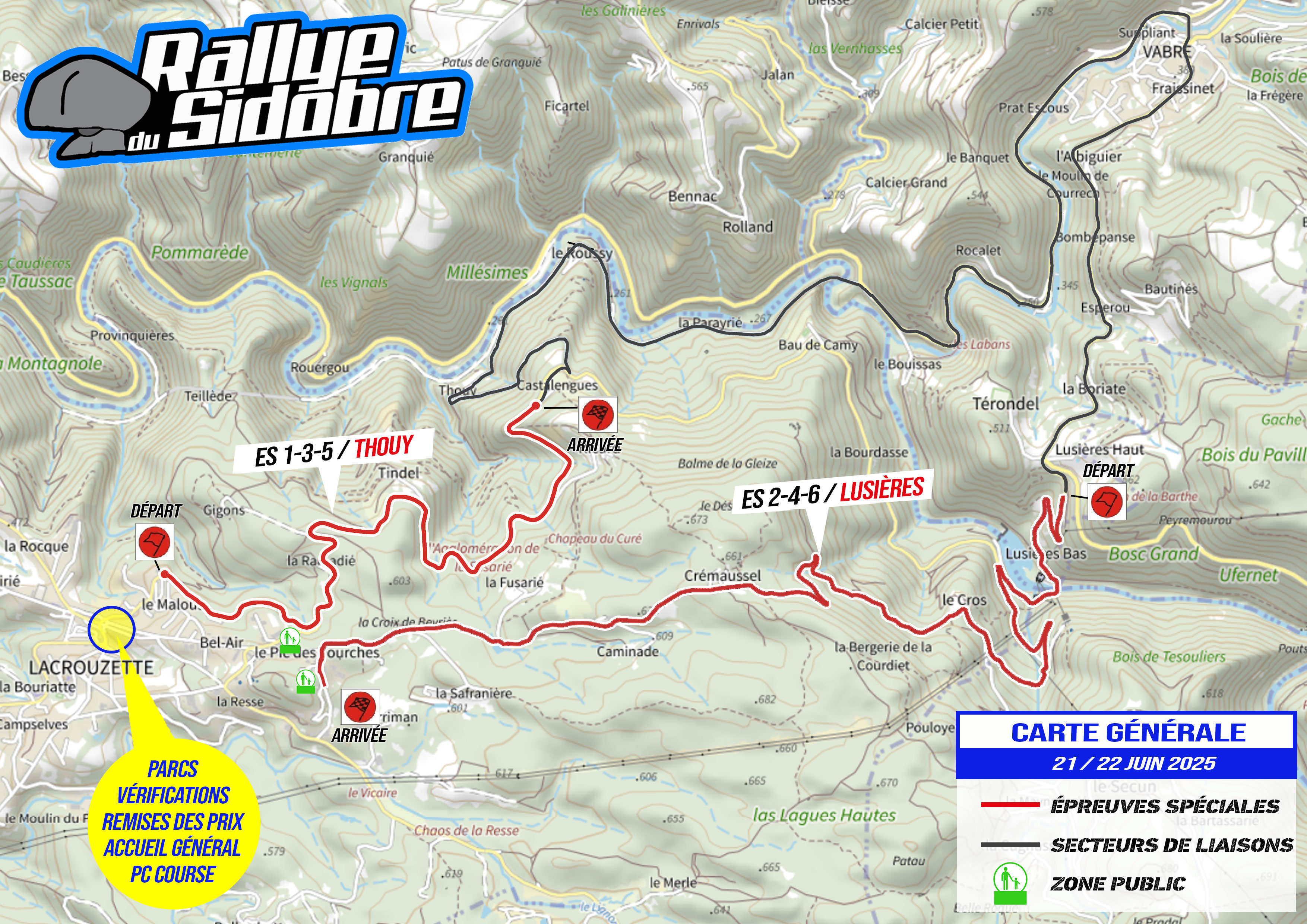 D 22/06 08:30 : Départ du rallye (Parc fermé, Place du Théron à Lacrouzette)
