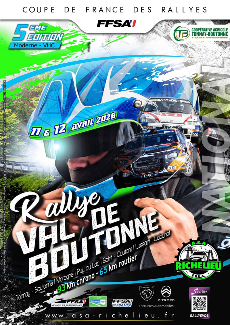 5e Rallye national Val de Boutonne & VHC, organisé les 11 et 12 avril 2026 par l’ASA Richelieu, ligue Nouvelle Aquitaine Nord.