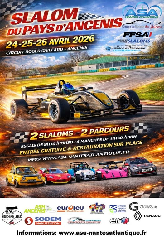 14e et 15e Slalom régional du Pays d’Ancenis, organisés du 24 au 26 avril 2026 par l’ASA Nantes Atlantique, ligue Bretagne – Pays de la Loire.